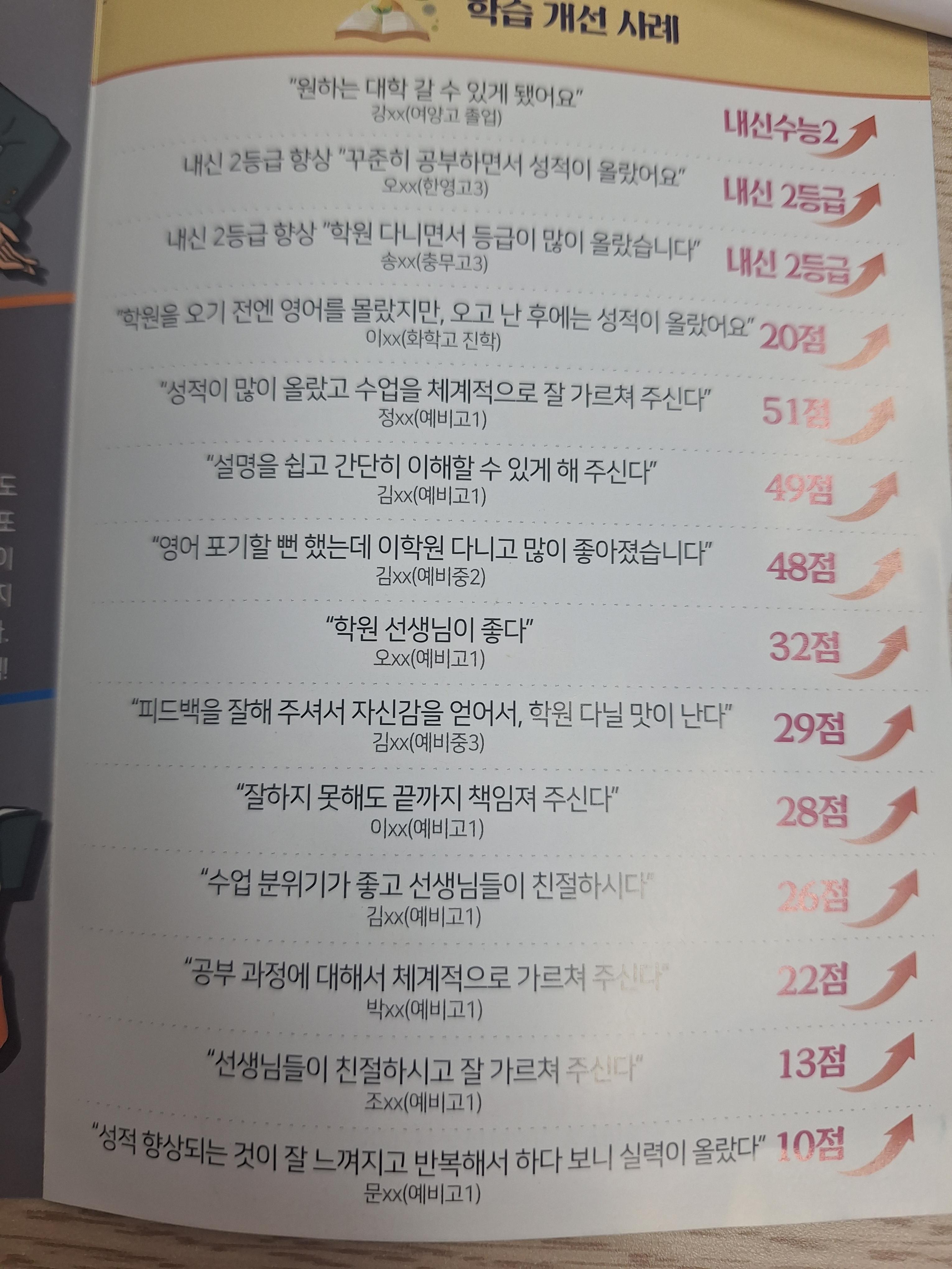 첫번째, 눈높이에 맞는 수업과 성적향상